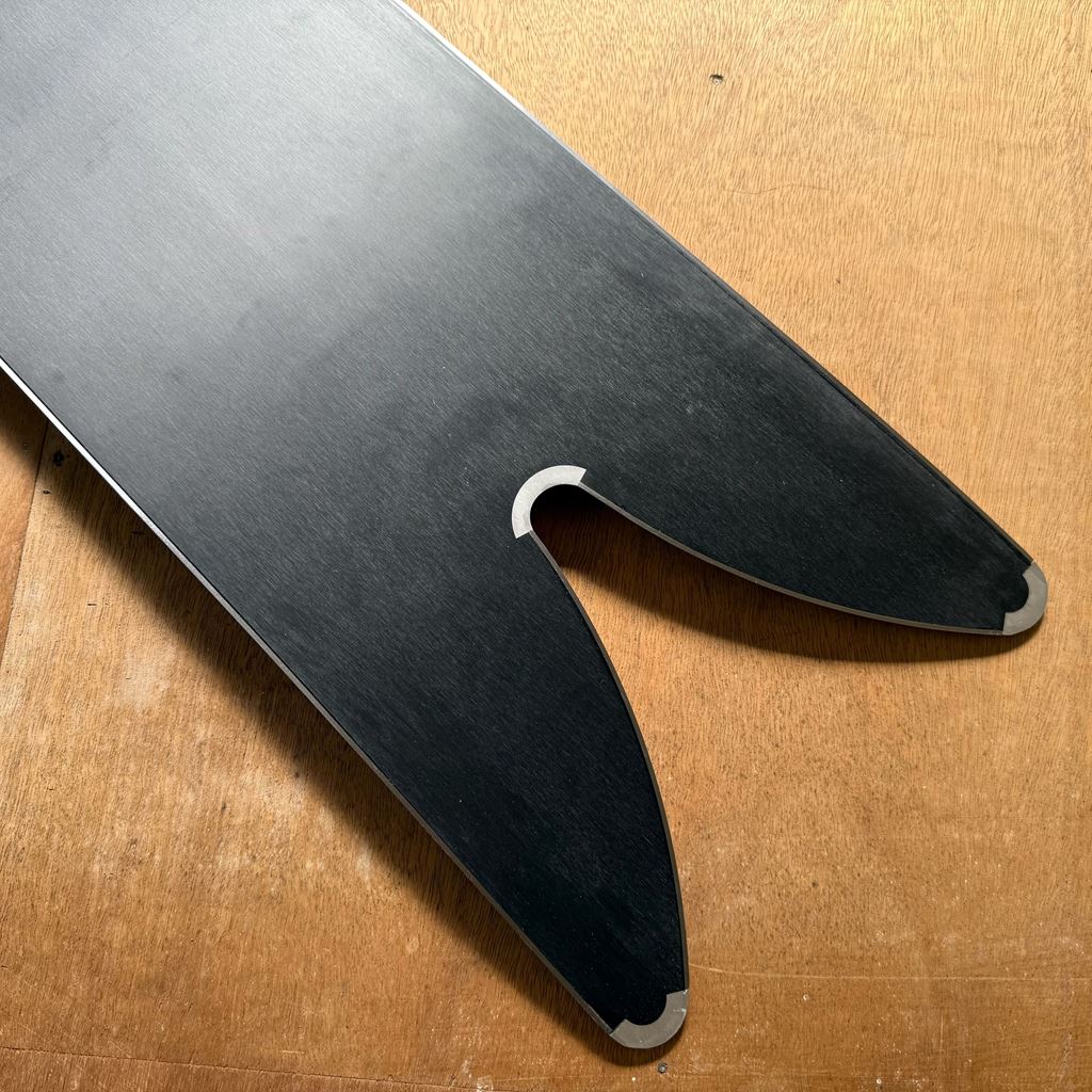 スワローの付け根からインサートホールまで面を出すことで、ツリーマッシュにも対応。滑走中はスワローテールであることを忘れさせてくれる。